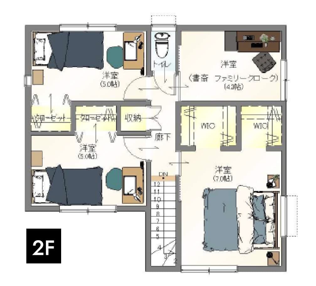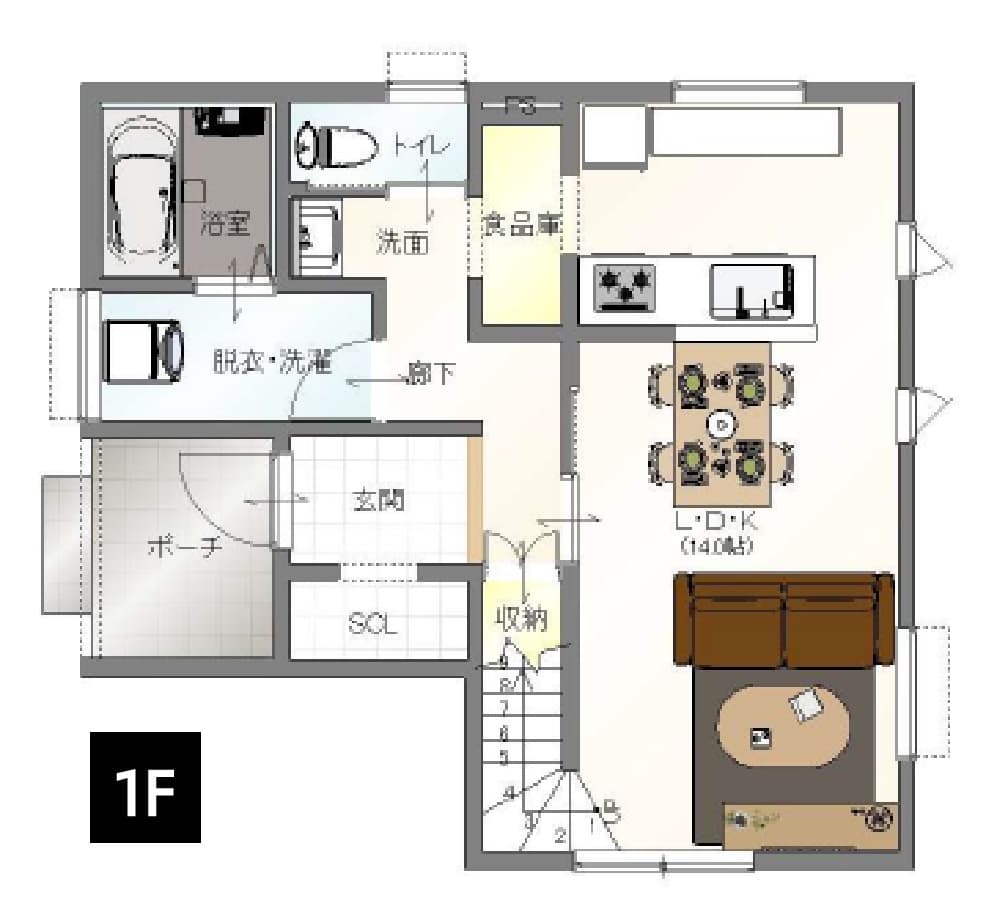 家族の温かさと明るさを組み合わせた設計。収納の充実や家事動線の工夫で、共働きでも安心して過ごせます。毎日を快適に、家族の笑顔が広がる空間です。