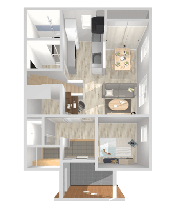 新婚や単身の方に最適な、シンプル&機能的な住まい。手が届きやすく。初めてのマイホームにぴったり。必要に応じて将来の拡張も可能だから、暮らしに合わせて成長できる家です。